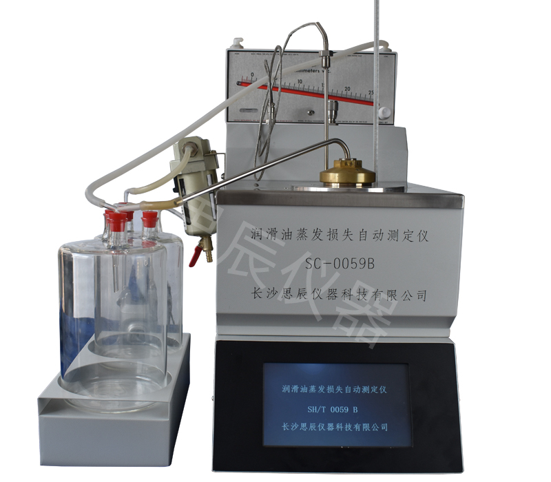 本儀器是根據(jù)標準的 SH/T0059《潤滑油蒸發(fā)損失測定法(諾亞克法)》及標準ASTM D5800所規(guī)定的要求設計制造的,適用于按 SH/T0059 B 法標準規(guī)定的方法,用于潤滑油和潤滑油基礎油。操作該儀器時將試樣置于蒸發(fā)損失測定儀中,在一定條件下加熱 1h,蒸發(fā)出的油正確由空氣攜帶出去。根據(jù)加熱前后試樣質量質量之差測定試樣的蒸發(fā)損失。